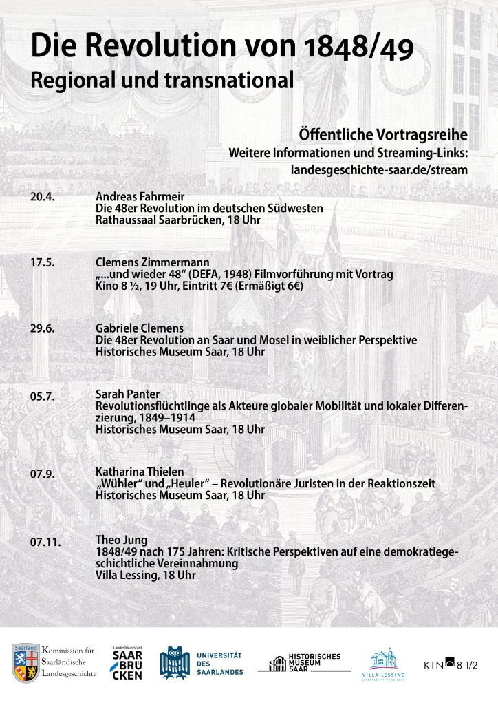 In my presentation titled 1848/49 nach 175 Jahren: Kritische Perspektiven auf eine demokratiegeschichtliche Vereinnahmung, I will address the increasingly ubiquitous framing of the revolution as a “democratic departure”, reflecting on its implications and pitfalls.